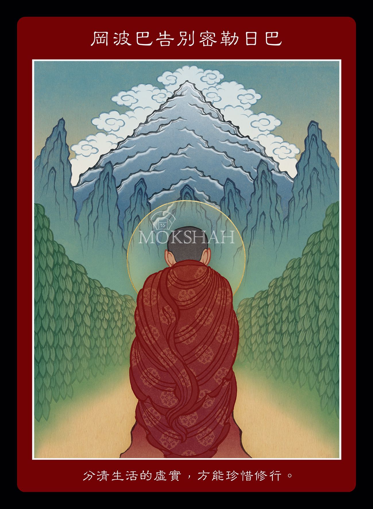 岡波巴在經過13個月的密集學習後,向他的老師告別,朝向自己命定之地前進。 啟發:暫時的成功、友情、親情與興趣,雖然為我們的生活添加不少光彩,但若我們的生命缺乏目標、意義與篤定,這些看似美好的事物,在錯誤的時間與情景下,就可能變成累贅與阻礙。 擁有生命的意義,才能讓我們感到自由。