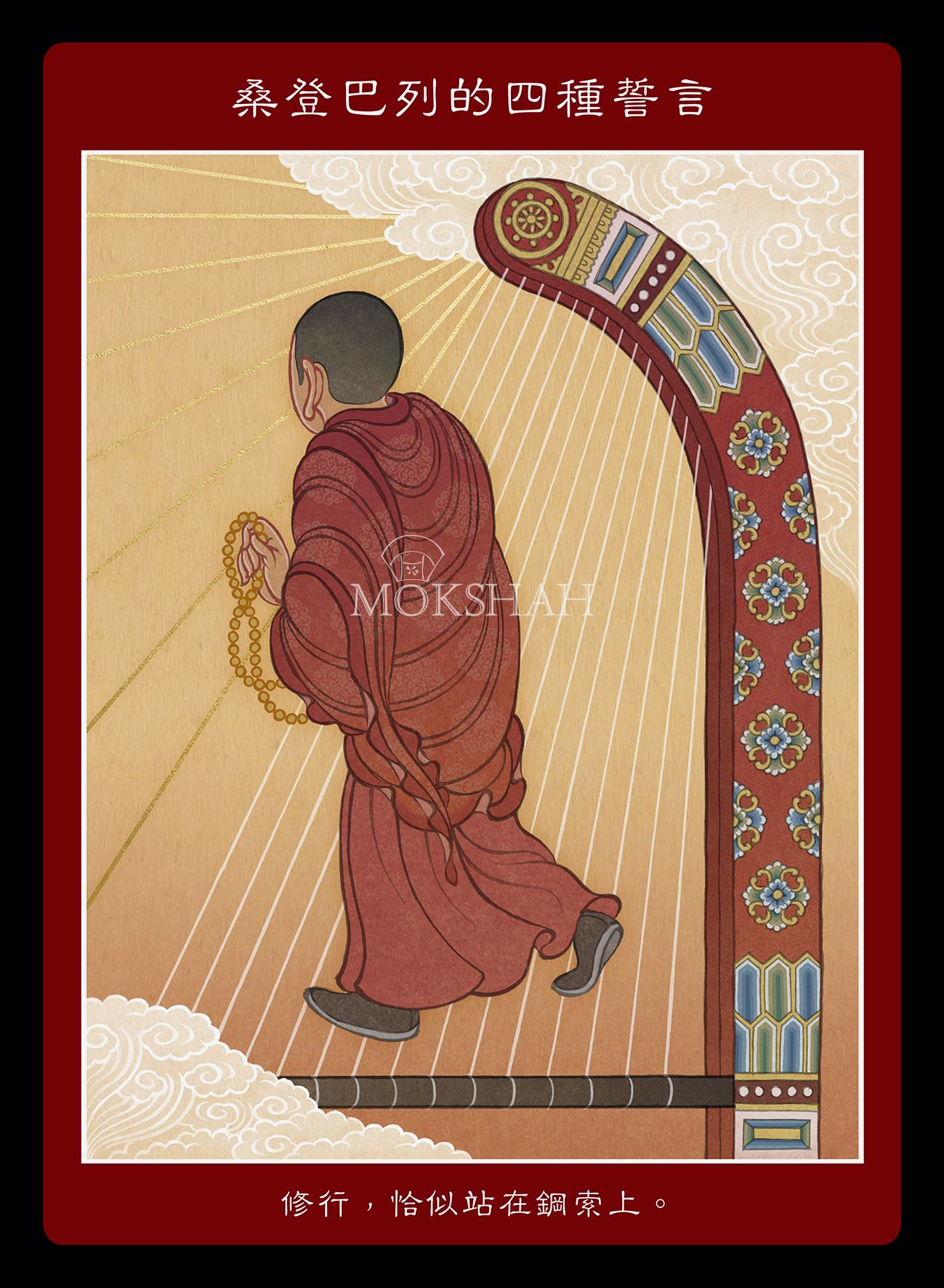 桑登巴列住在深山時,回憶起他修行的過程,就是讓自己處在如同琴弦一般不過緊、不過鬆的狀態下。